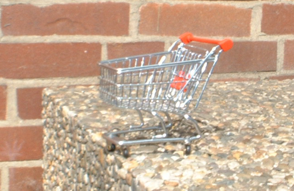 Kleine Modelle von Einkaufswagen, immer ganz süß.